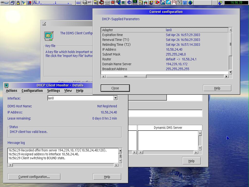 No connection. What now? By looking at the DHCP client monitor I found the servers IP, Router and DNS numbers.