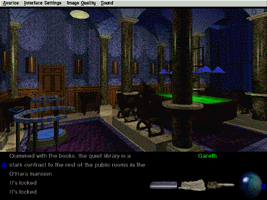 Über die Menüleiste können sie vier Stufen der Grafikschärfe einstellen. Sie haben auch die Möglichkeit, die Größe des verwendeten Caches zu bestimmen. Hier zeigt sich eine gute Planung: nicht jeder hat einen Pentium 3000 mit Terabit Grafikkarte. Der Maus-Cursor ändert sich je nach Position: indem sie ihn hin- und herbewegen, kann er sich in eine Hand, einen Pfeil für Bewegung und in Augen, um nach oben und unten zu schauen, verändern. Ein sehr nettes Feature sind rechte Maustaste-Popup-Menüs, die ihnen Details über alles liefern, auf das sie mit der Maus zeigen. Sie können auch Objekte herumziehen, indem sie die rechte Maustaste benutzen. Das Spiel benutzt nicht die üblichen N,S,O,W Blickwinkel, wie es die meisten Spiele tun: je nachdem, wo man sich befindet, hat man 2-5 Blickwinkel.