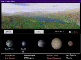 Nachdem wir die ganze Zeit gespielt haben, herrschen wir zurzeit über 23 Planeten in 20 verschiedenen Solarsystemen, die sich auf 10 Quadranten der Galaxie verteilen. Das sind natürlich Peanuts, wenn man bedenkt, daß alle Spieloptionen einstellbar sind, aber wir fanden, daß das für einen jungen, frischen Herrscher gar nicht so schlecht war. Es gibt noch zwei weitere Spezies in dieser speziellen Galaxie, eine ist sowohl intelligent als auch freundlich, während die andere ziemlich aggressiv und böse ist, allerdings auch ziemlich dämlich. Nebenbei, dank OS/2 spielen wir im Hintergrund, während wir diesen Artikel schreiben und wir haben unser Imperium gerade in eine Demokratie verwandelt. Als nächsten Schritt werden wir alle meine Solarsysteme in die Föderation eingliedern.
