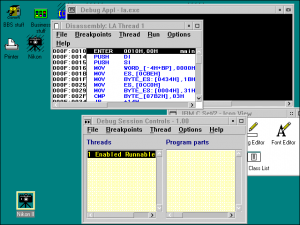 The debugger has the power to trace through even the most hardest of OS/2 apps, even multi-threaded apps are no problem. You can debug anything from CMD.EXE (OS/2 command processor) to DESCRIBE (OS/2 commercial wordprocessor 32bit DTP). I've included a few snap shots of the tools and the debugger.