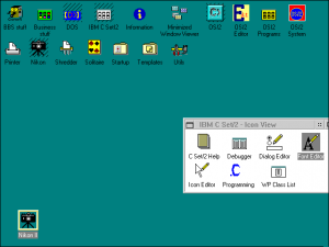 IBM's compiler is SAA (Systems Application Architecture) Level 2, which basically means that you can write code, for OS/2, which is easily ported between IBM's (and others) operating platforms (such as AS400 and mainframes). It is an command line compiler, so you can either use your favorite editor, or use the WorkBench. The Workbench is a programmers dream, but for me it, was a quick view, then delete, I simply was out of hard drive space (only 1.5 meg in size, but with a BBS eating up all the room for OS/2 share ware, I couldn't delete the files, without my users complaining). Thus I'am not able to show you a snap shot of the screen from workbench, but all I can say, it's brilliant.