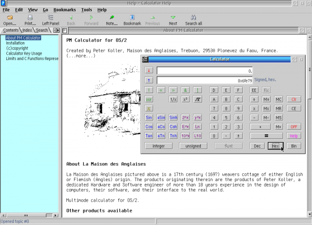 A presentation manager calculator capable of functioning in binary, hex, decimal, and floating point modes. Also converts between signed, unsigned, and float. Based on C language math functions.