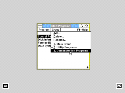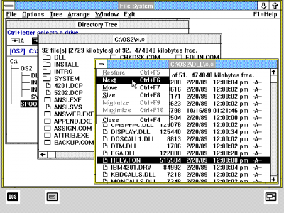 An interesting thing about OS/2 1.1 is that it was released in late 1988, several years before Windows 3.0, yet it has what are essentially early versions of Program Manager, WinFile, and Task Manager. Meanwhile, Windows 2.x was stuck with the MS-DOS Executive.