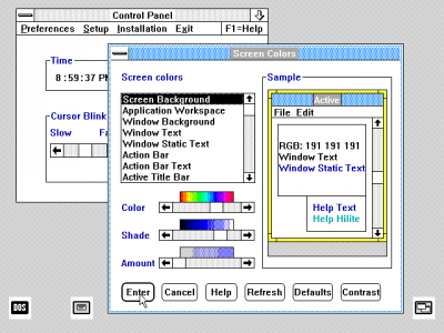 The OS/2 1.1 control panel looks almost exactly like the one from Windows 2.