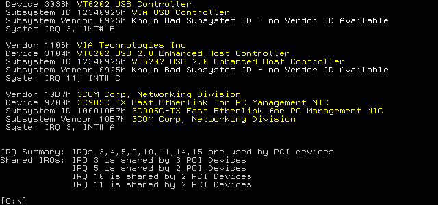 IRQ Summary: IRQs 3,4,5,9,10,11,14,15 are used by PCI devices