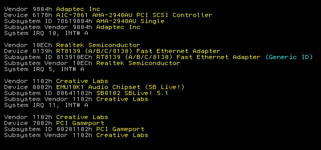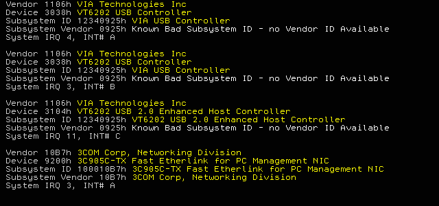 And this is the pci.exe output in full mode (produced by command pci.exe from an OS/2 Command Prompt):