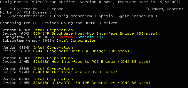 Craig Hart's PCI+AGP bus sniffer, version 0.48vk, freeware made in 1996-2003.