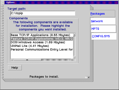 Pressing the options button displays this settings notebook where you can select the options and applications you want to install.