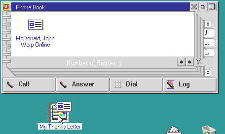 Sie können auch eine Schablone aus einem Dokument erzeugen, indem sie die Option Schablone' in der File Lasche der Einstellungen ihres Dokuments markieren. Auf diese Art können sie einfach Kopien von ihren Standard-Serienbriefen auf ihren Desktop ziehen, einige Namen von ihrer Kontaktliste darauf ziehen und die Kopie dann auf dem Drucker oder dem Fax fallenlassen, ohne das Keyboard auch nur zu berühren. Fast jedes Objekt in OS/2 Warp kann auf diese Weise in eine Schablone verwandelt werden.
